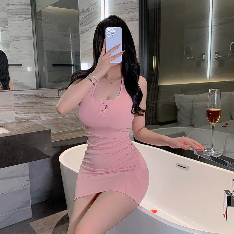 Sexy short skirt temptation halter neck sling one-piece tight pajamas