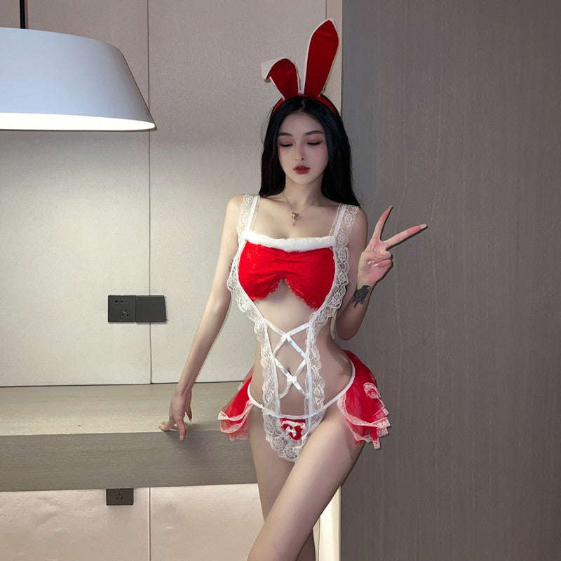 Christmas outfit sexy lingerie sexy open crotch jumpsuit lace-up uniform temptation pajamas-D8863