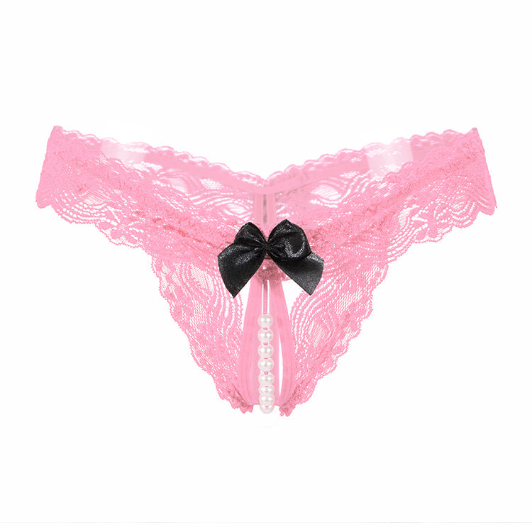Hollow Embroidery Pearl Bondage Temptation Thong