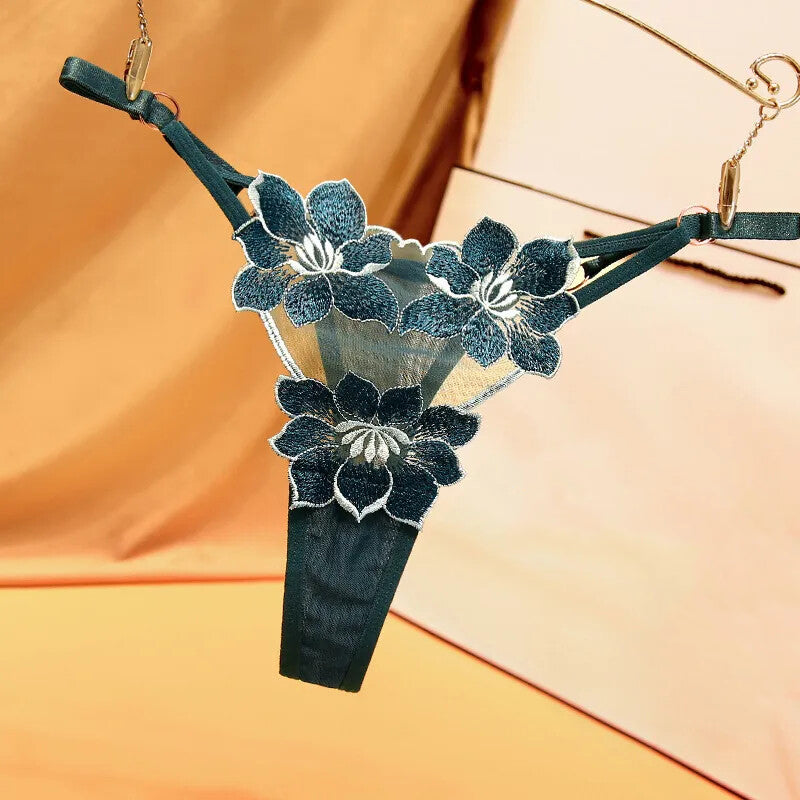 Embroidered Sexy Transparent Hollow Pearl Thong