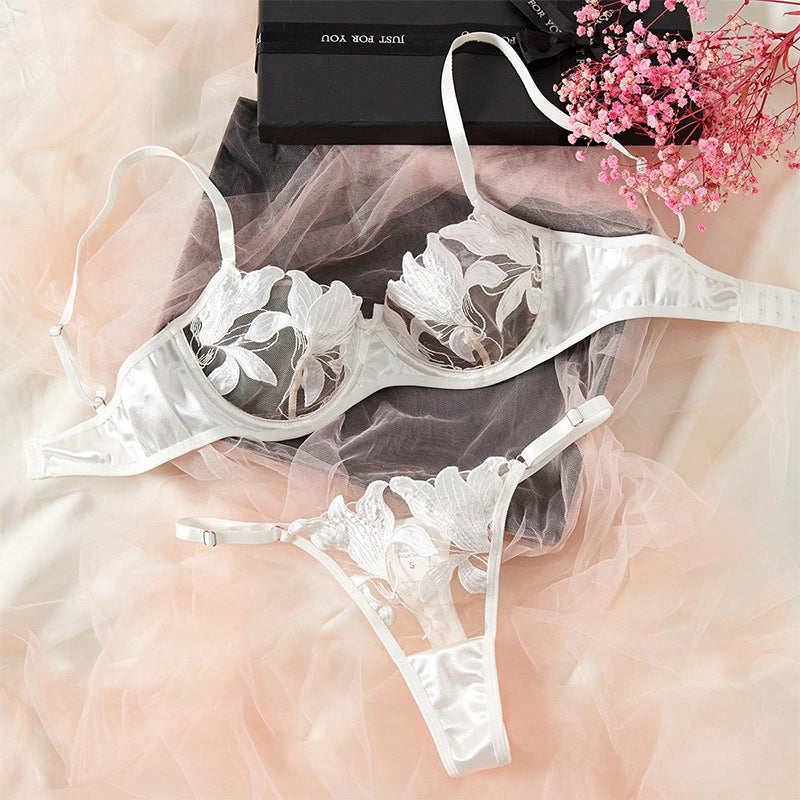 Floral Embroidered Underwire Lingerie Set