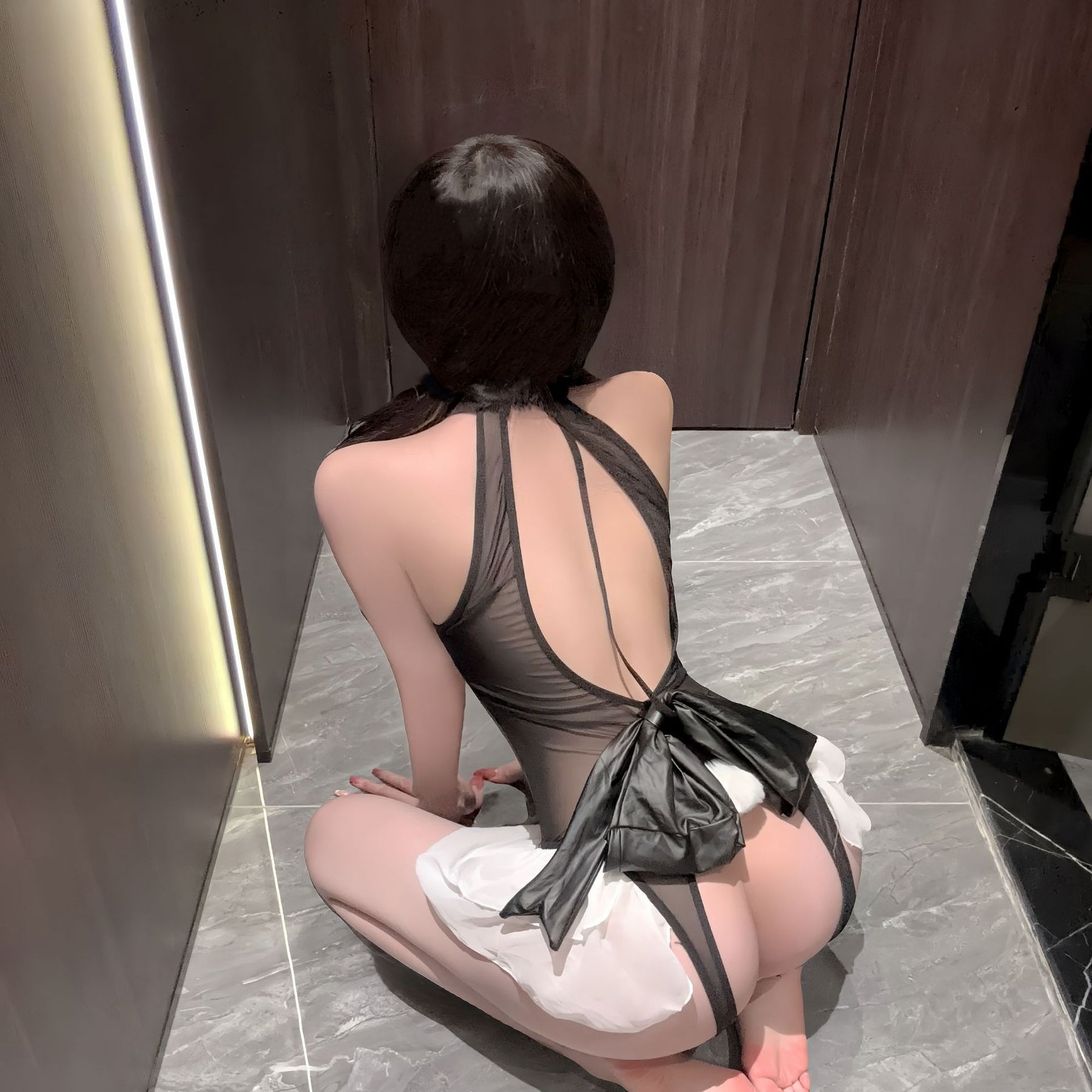 This bunny-inspired costume set blends playful charm with confident allure. Designed with a sleek. body-hugging silhouette and delicate lace-up accents. it delivers a bold yet refined look—flirtatious. eye-catching. and unmistakably captivating.