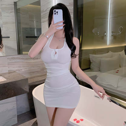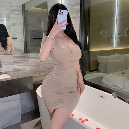 Elevate your look with our stunning Pure Desire Style Halterneck Hip-Wrapped Slim Dress. Crafted for sophistication and allure, this dress will accentuate your figure and make a statement at any event. Flaunt your style effortlessly in this chic outfit.